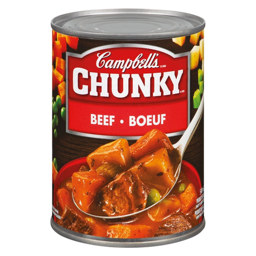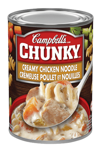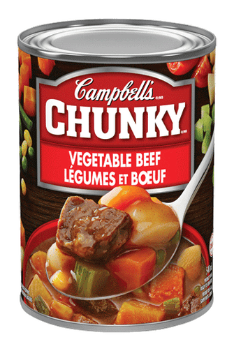Campbell’s Chunky Soups are a hearty selection of 19 soups made with lots colourful vegetables like fresh carrots, celery and potatoes and quality seasoned meats like big chunks of juicy prime rib, steak or chicken.