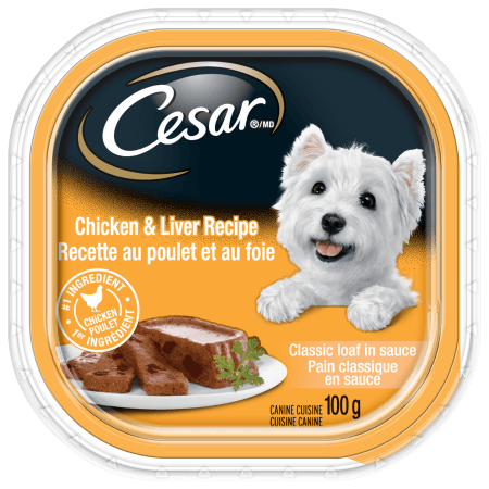 Small dogs love a meaty taste! So treat your special friend to the satisfying flavour of a tender, melt-in-its-mouth filet mignon meal. This pate-style filet mignon flavoured loaf provides complete, balanced nutrition and a source of moisture that can be beneficial to small dogs. Gram-for-gram, wet foods like the Cesar brand have fewer calories than dry food. Paired with Cesar Dry food, the 100g serving makes a perfect meal for small dogs.