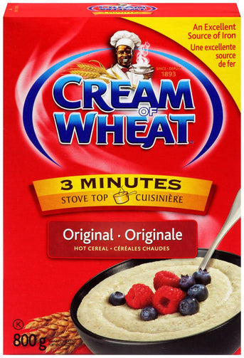 Cream of Wheat® Original Enriched Farina is made with ground wheat, has a smooth texture, and is an excellent source of iron and calcium. The traditional cook-on-stove product is prepared by boiling water or milk and slowly pouring in the ground wheat while stirring. Let it simmer while stirring for 2 ½ minutes after the ground wheat is blended. This product may also be cooked using a microwave oven for faster and easier preparation.