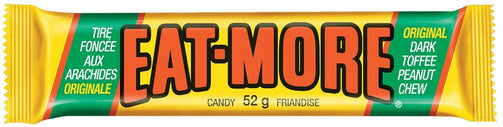 Eat-More Candy Bars are a combination of original dark toffee, peanuts & creamy milk chocolate - a sweet chewy treat! From the Hershey Canada company-this candy is fit for any retro candy store!