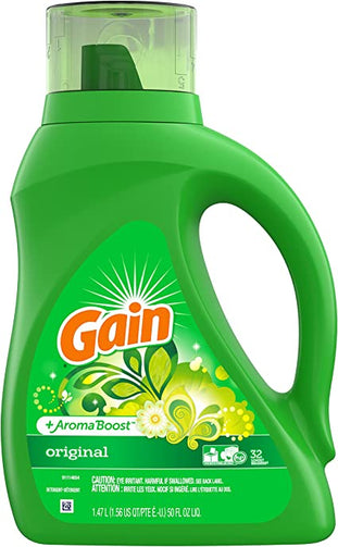 Gain laundry detergent works in both HE and regular machines, and the detergent lifts away dirt and locks in amazing scent to keep your laundry smelling great even after six weeks. |