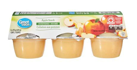 - This handy snack includes six (6) cups of 113 g each. Ready to serve and it is a healthy replacement for oil in cake and muffin recipes. Store at room temperature or refrigerate (do not freeze).