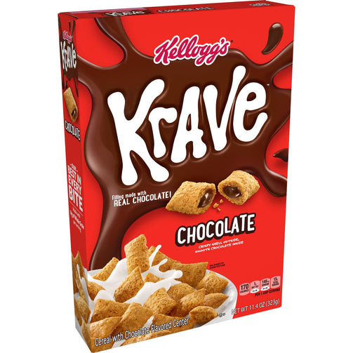 Kellogg’s Krave cereal is wickedly crunchy on the outside, and deliciously chocolatey on the inside. Instantly satisfy your urges with an irresistible, thrilling chocolatey flavour. Kellogg’s Krave is made with whole grain.