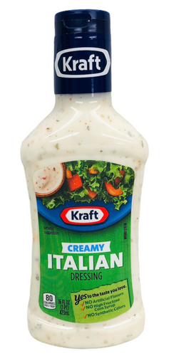 Kraft Zesty Dressing adds deliciously zesty flavor to almost anything. Bursting with tangy vinegar and dried red bell peppers, this family favorite Italian dressing delivers Italian flavor in every bite. Pre-mixed for convenience, this dressing is ready to enjoy after a quick shake.