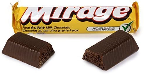 Mirage is one of the oldest chocolate bars in Canada. It is made by Cadbury Canada and is a caramel filled chocolate bar. This chocolate bar was first sold in 1968 and has since become a favourite among chocolate lovers. Sealed in a vault in Toronto, the only place the Caramilk bar is made, the 44-year-old secret is carefully guarded and protected so the mystery can continue.