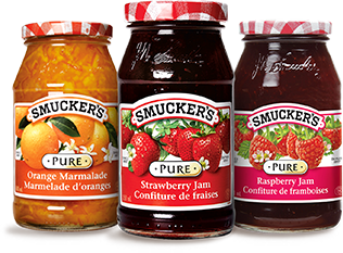 Smucker's Pure Jams are made from a blend of crushed sun-ripened fruit and fruit puree. They're packed with mouthwatering pieces of fruit picked at the peak of perfection, with no preservatives, artificial flavours or colours.